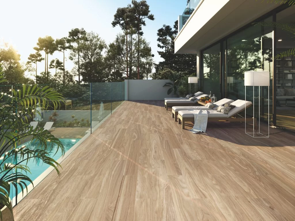 Los suelos de exterior son perfectos para espacios al aire libre como terrazas, patios, áreas de piscina y zonas recreativas en jardines. Gracias a su excelente resistencia a la humedad, altas temperaturas y variaciones de temperatura, son una opción confiable para ambientes exteriores.